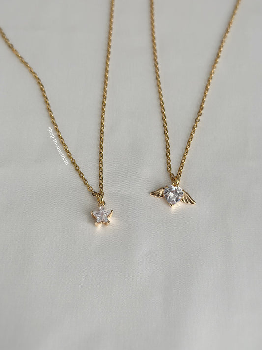 Gold Angel Heart Wings Necklace