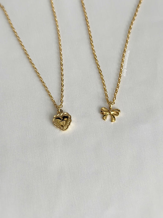 Gold Ribbon Bow & Heart Necklace Pack (Set of Two)