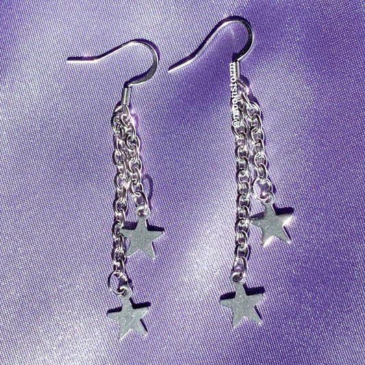Silver Star Drop Earrings