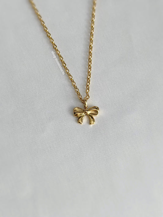 Gold Glam Ribbon Bow Necklace