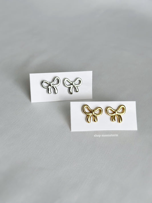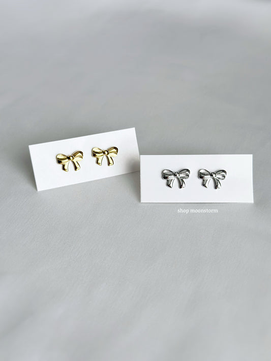 Lux Ribbon Bow Stud Earrings (Gold Version)