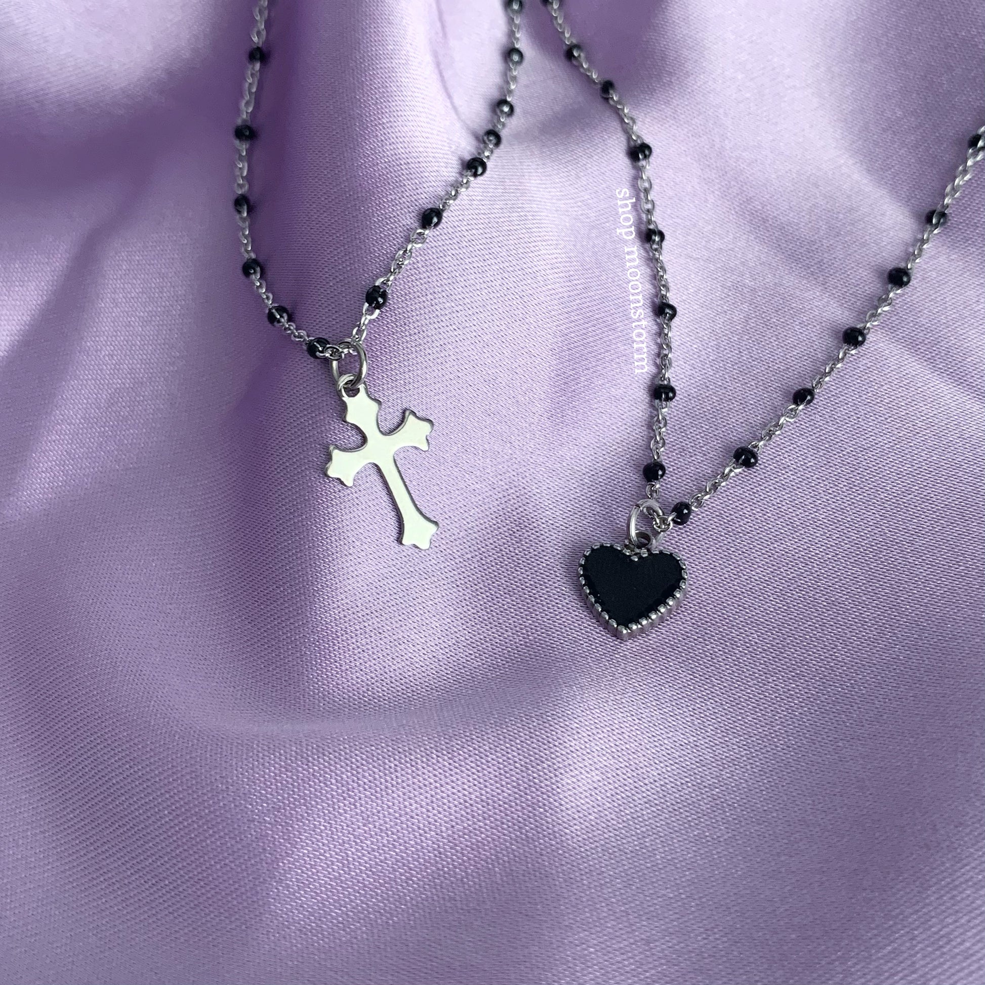#1 - Black heart beaded necklace in 16" length + 2" extender
